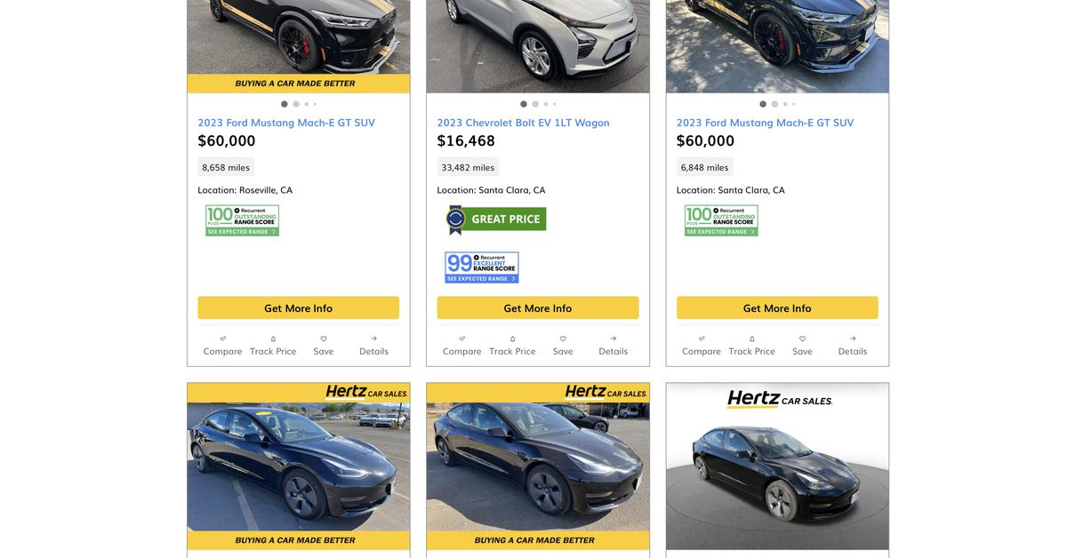 Asked by The Verge if this was a special offer for EVs or a typical offer for Hertz’s used cars, communications director Jamie Line confirmed the strategy isn’t new, saying, “By connecting our rental customers who opt into our emails to our sales channels, we’re not only building awareness of the fact that we sell cars but also offering a unique opportunity to someone who may be in the market for the same car they have on rent.”