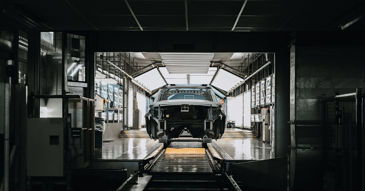 Besides that minor bump in the road (the Great British weather and an August downpour meant work was delayed by 48 hours), JLR’s £250 million ($323.4 million) upgrade of its Halewood plant has been smooth. Off the River Mersey, 10 miles from Liverpool, Halewood has long been synonymous with the British car industry—and JLR is the UK’s largest automotive employer. (The company’s controversial Jaguar Type 00 will be built at a different factory in Solihull.) Opened in 1963 by Ford of Britain to build the Anglia (the small family saloon starred as the flying car in the Harry Potter series), plans to transform the plant began in late 2020. Ford’s team ditched the tape measure for a digital twin, scanning 1,000 square meters (10,764 square feet) of footprint, floor to ceiling, every weekend.